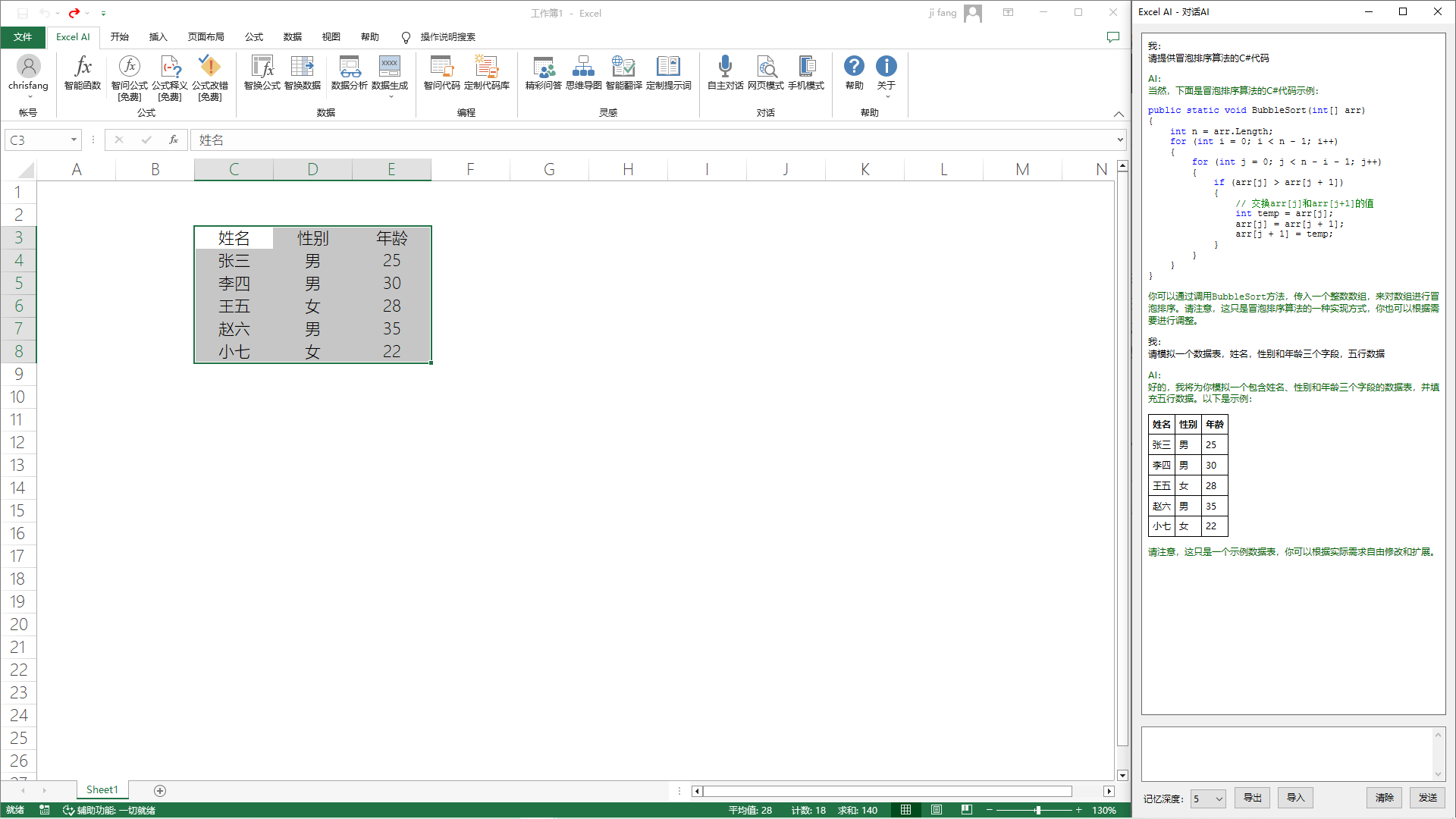 注意:这项操作会覆盖掉当前活动单元格当中的已有内容,因此Excel AI会提示您这样操作的风险,并需要您的确认