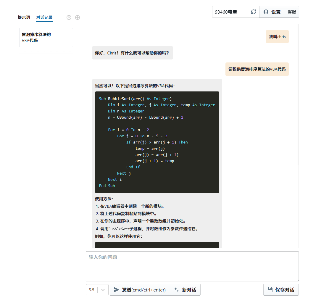 说明:如果底部右侧显示的是【自动保存对话】复选框,在勾选此选项的情况下,每次点击【新对话】按钮时都会将当前的聊天内容保存为对话记录