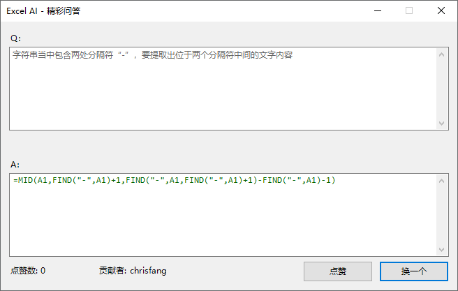 例如:=AI.ExtractNames("李强去公司找王刚,遇到保安刘涛阻拦,幸好张力来解围")